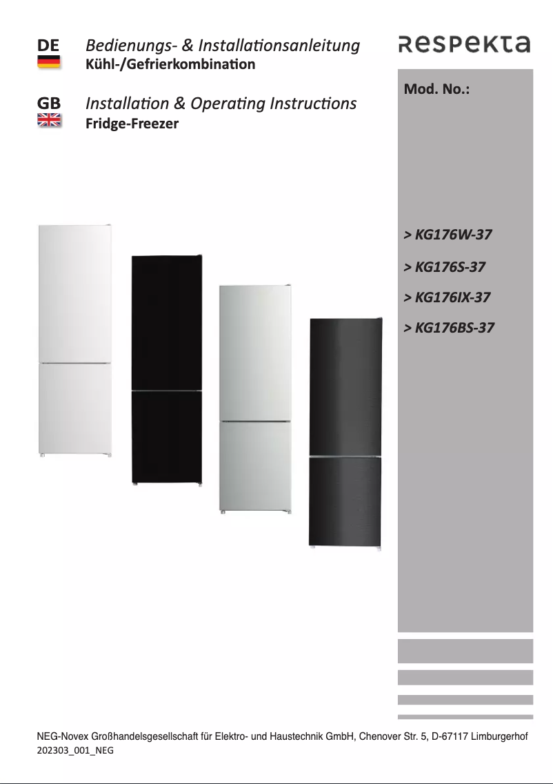Pour accompagner l'utilisateur, un manuel de l'utilisateur est disponible, fournissant des informations détaillées sur l'utilisation et l'entretien de l'appareil. En résumé, le Respekta KG176IX-37 est un réfrigérateur performant qui répond aux besoins quotidiens en matière de conservation des aliments avec style.