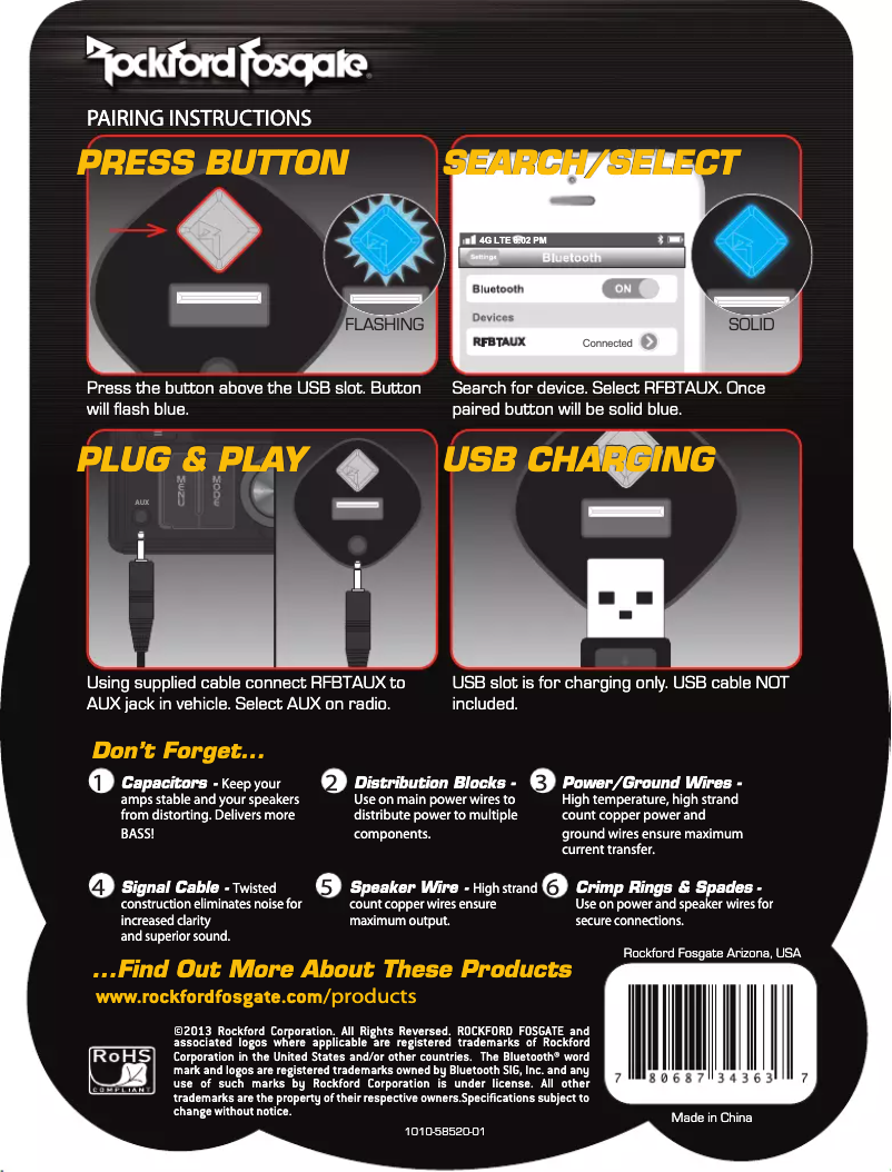 Présentation des spécificités du produit RFBTAUX de la marque Rockford Fosgate